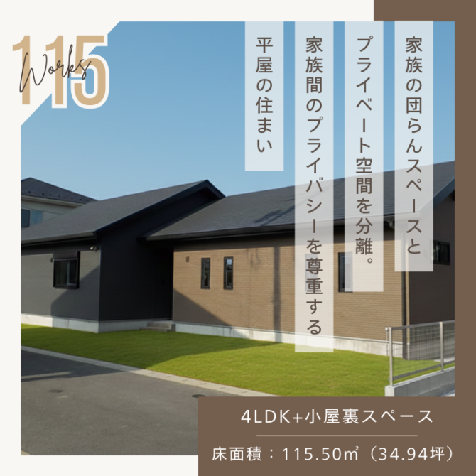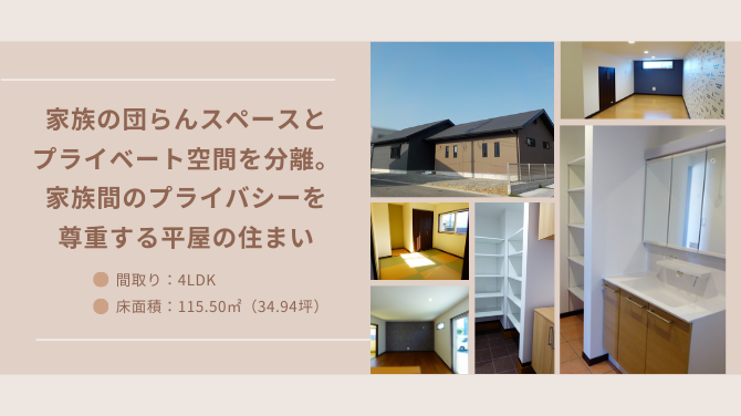 施工事例115 「家族の団らんスペースとプライベート空間を分離。家族間のプライバシーを尊重する平屋の住まい」