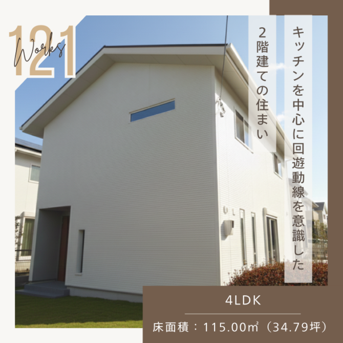 施工事例121 「キッチンを中心に回遊動線を意識した2階建ての住まい」