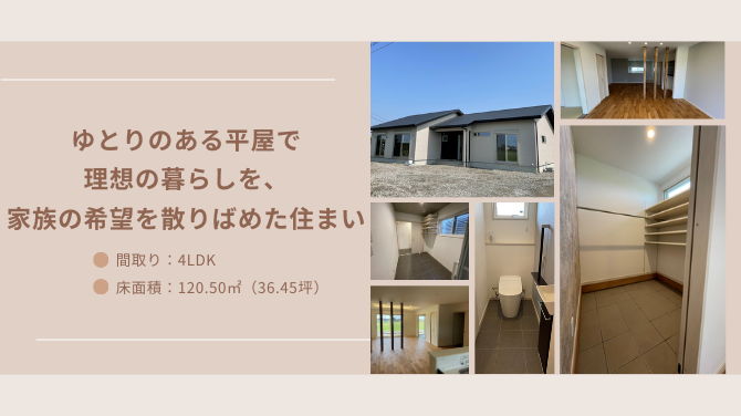 施工事例130 「ゆとりのある平屋で理想の暮らしを、家族の希望を散りばめた住まい」
