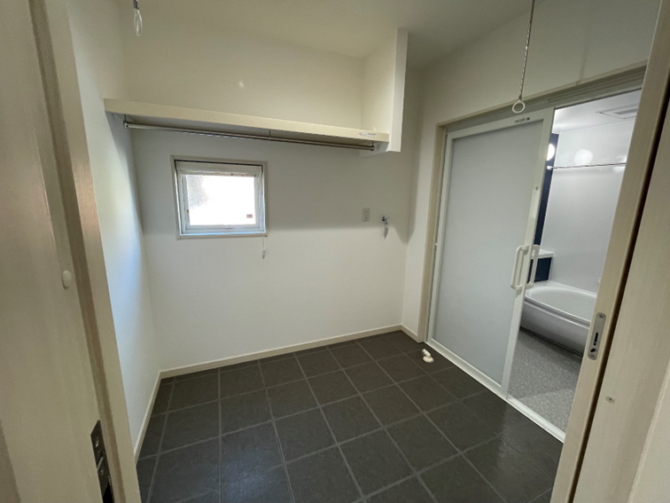 洗濯物を干せる枕棚とハンガーパイプを設置。