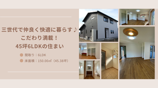 施工事例145「三世代で仲良く快適に暮らす♪こだわり満載!45坪6LDKの住まい」
