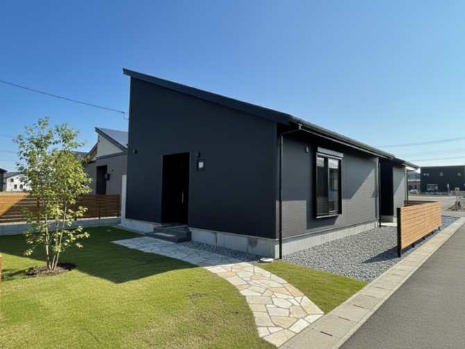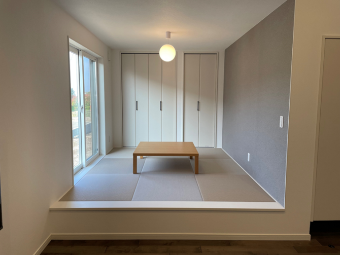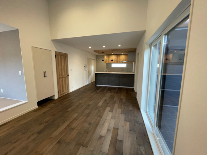 施工事例146「勾配天井のリビングと小上がり和室で立体感のある空間を演出。プライバシーにも配慮した中庭のあるコの字型平屋の住まい」