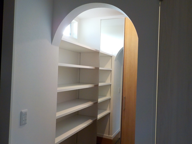 アーチ型の開口が空間に柔らかな印象をプラスし、