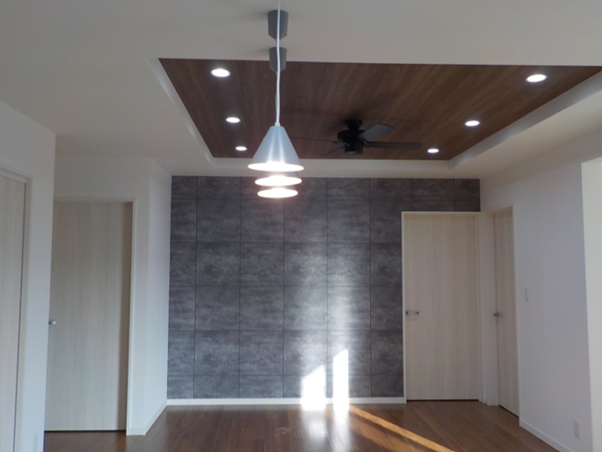 リビングの一部には折り上げ天井を採用し、