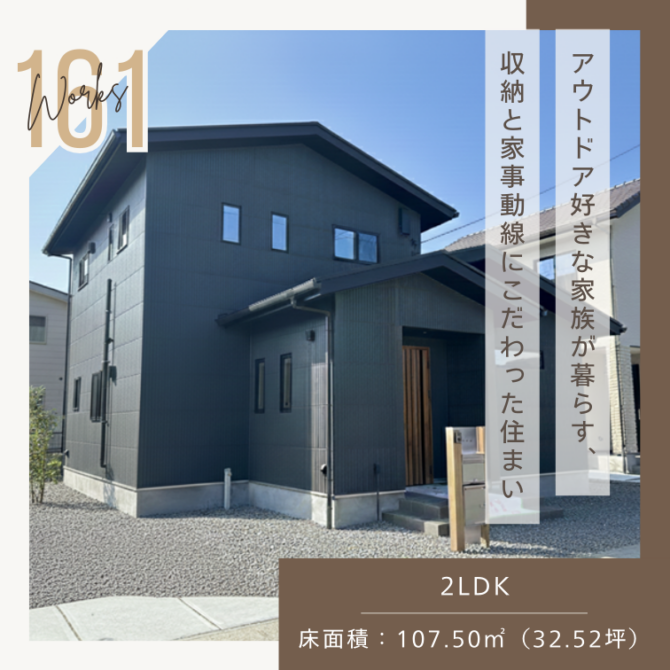 施工事例161『アウトドア好きな家族が暮らす、収納と家事動線にこだわった住まい』