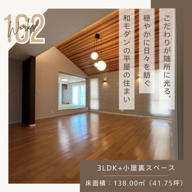 施工事例162『こだわりが随所に光る、穏やかに日々を紡ぐ和モダンの平屋の住まい』