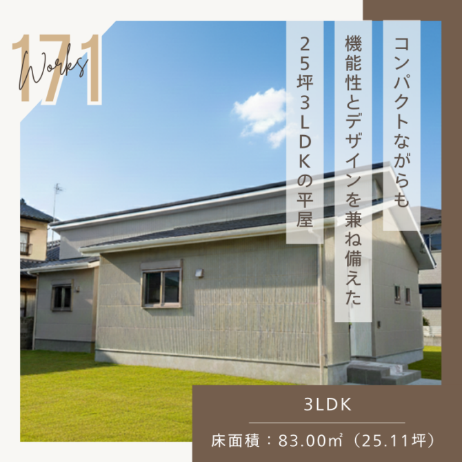 施工事例171『コンパクトながらも機能性とデザインを兼ね備えた25坪3LDKの平屋』
