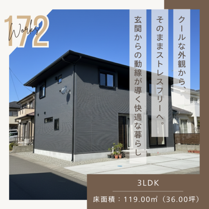 施工事例172『クールな外観から、そのままストレスフリーへ。玄関からの動線が導く快適な暮らし』