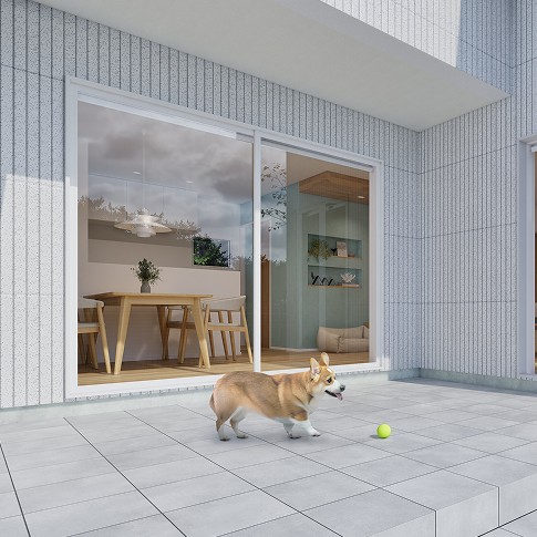 ワンちゃんが気持ちよくお散歩に出かけ、