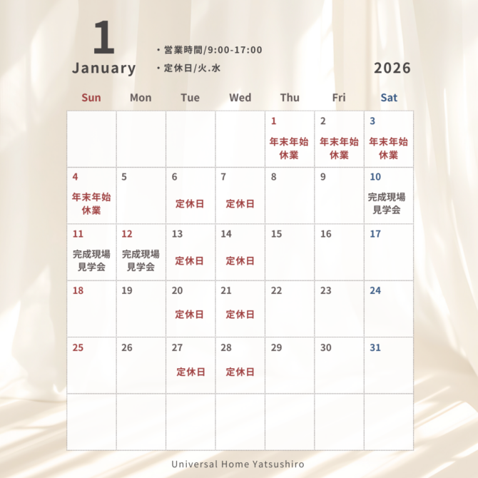 【カレンダー】1月の営業日のお知らせ