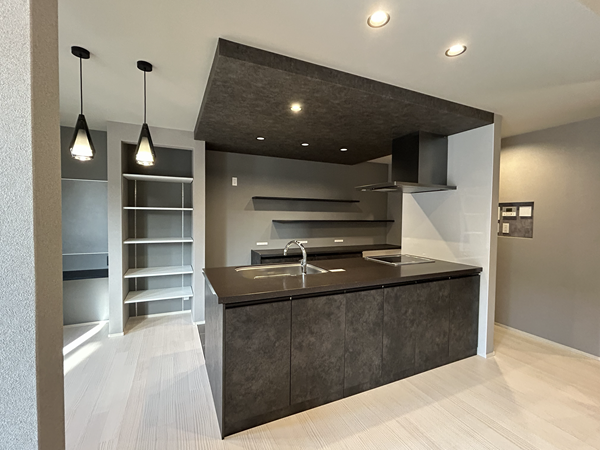 ペンダントライトの柔らかな光が奥行きを生み出し、