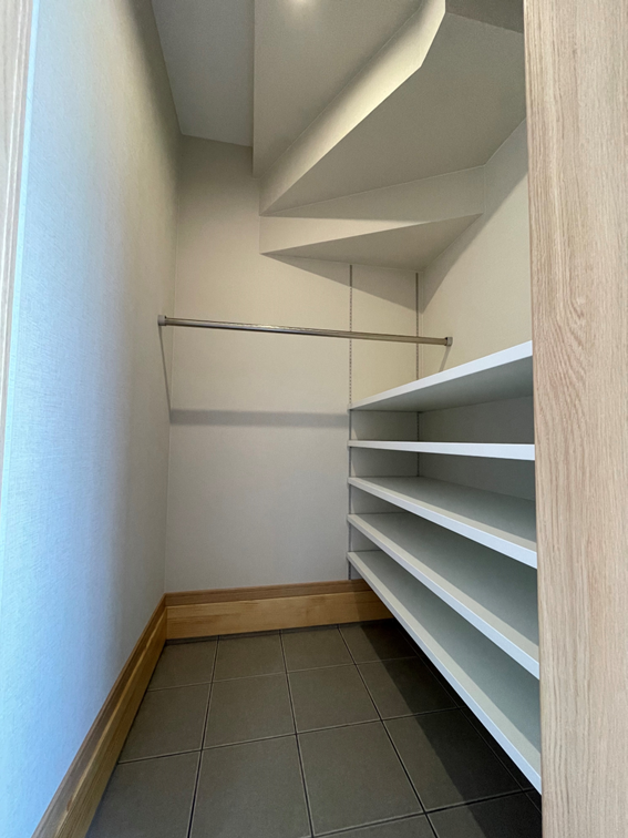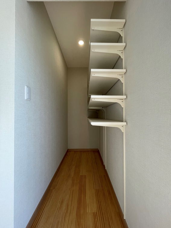 可動棚を設置し、タオルや洗剤の収納に便利です。