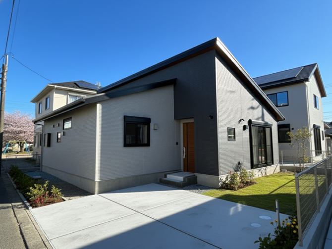 施工事例174『家族のライフステージに寄り添う快適な空間と、視線を惹きつけるモダンでスタイリッシュな平屋』
