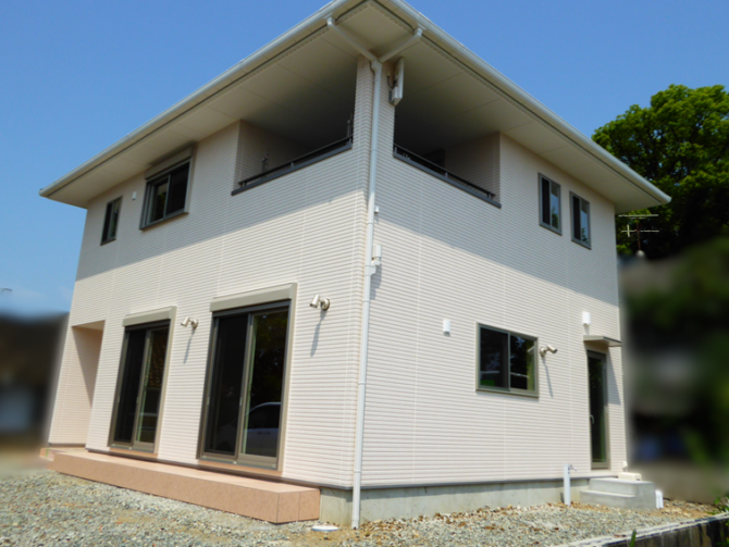 施工事例63 「ガレージと広々バルコニーがある2階建ての住まい」