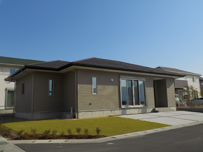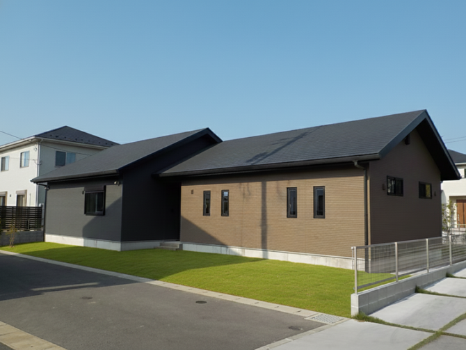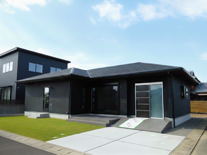 施工事例114 「シャープな外観と広々LDK。家族がのびのびと暮らせる平屋の住まい」