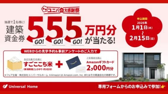 建築資金券555万円分をプレゼント♪