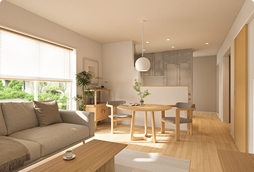 毎日過ごす家だからLDKは居心地の良い空間に。他の部屋の通り道にならないリビングは、落ち着いてゆったりくつろげます。