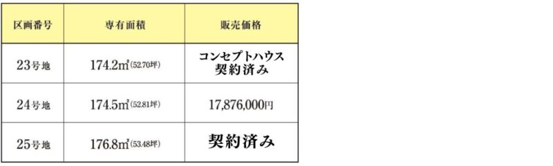 | 今回販売区画数 | 建築条件付宅地 3区画 |