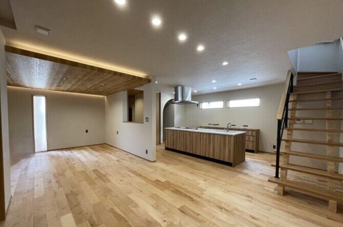 ユニバーサルホームの住宅展示場津店は、三重県津市垂水にあります。伊勢街道と県道114号の交差点のそばで、展示場の裏手には岩田池公園が広がっています。周辺は住宅が多く建ち並んでいますが、海岸が近く西側には田園地帯がある、自然豊かな環境です。 こちらのモデルハウスの見所は、広々としたDKリビングに吹き抜け回廊という、贅沢な空間の取り方です。無垢材を使ったフローリングは床暖房入りで、視覚的にも物理的にも温かさが感じられます。さらにアウトドアリビングとして使える、ゆとりのデッキも魅力です。それから生活のしやすさを配慮して寝室とクローゼット、パウダールームは一続きに配置されており、水周りも効率的な家事動線を意識した配置になっています。