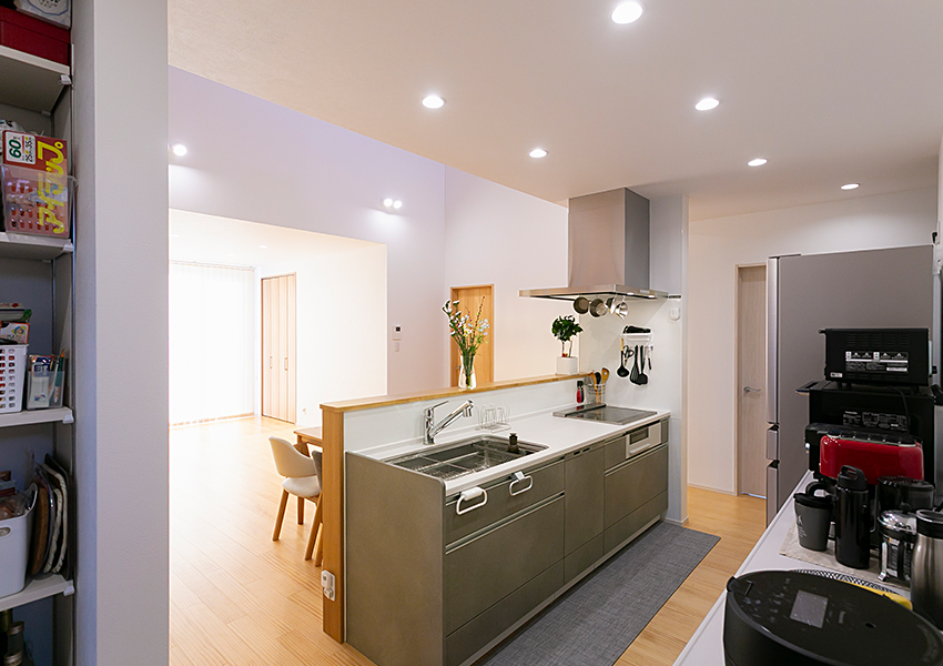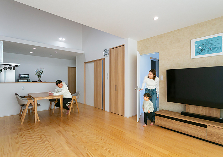 「以前の住まいでは、家事の最中に子どもの様子が見えず、不安を感じることも多かったですね。だからこそ、家族の気配を感じながら過ごせる間取りには特にこだわり、形にしていただきました」とK様。