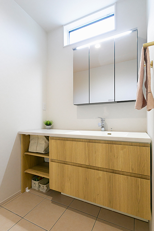洗面台は既製品を組み合わせながら造作風のおしゃれなデザインに。