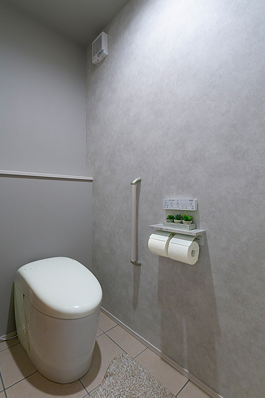 さらに、居室へ出入りする時には必ずリビングを通る動線であるため、自然とご家族の気配が伝わる安心感も生まれました。